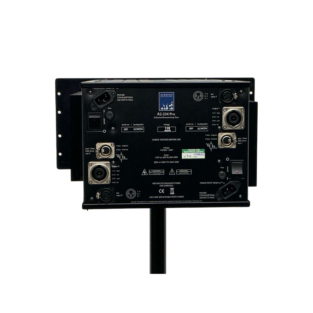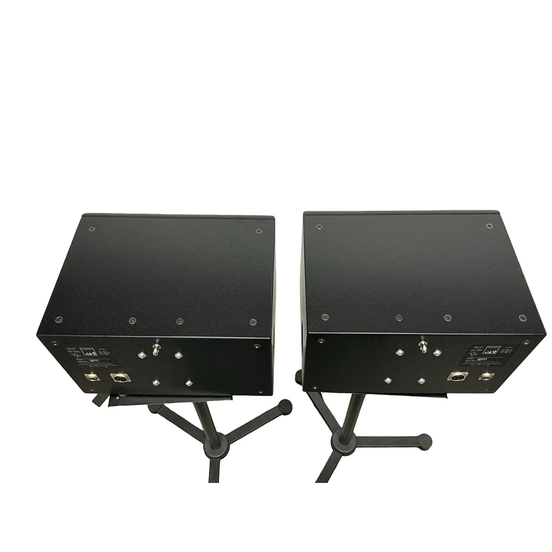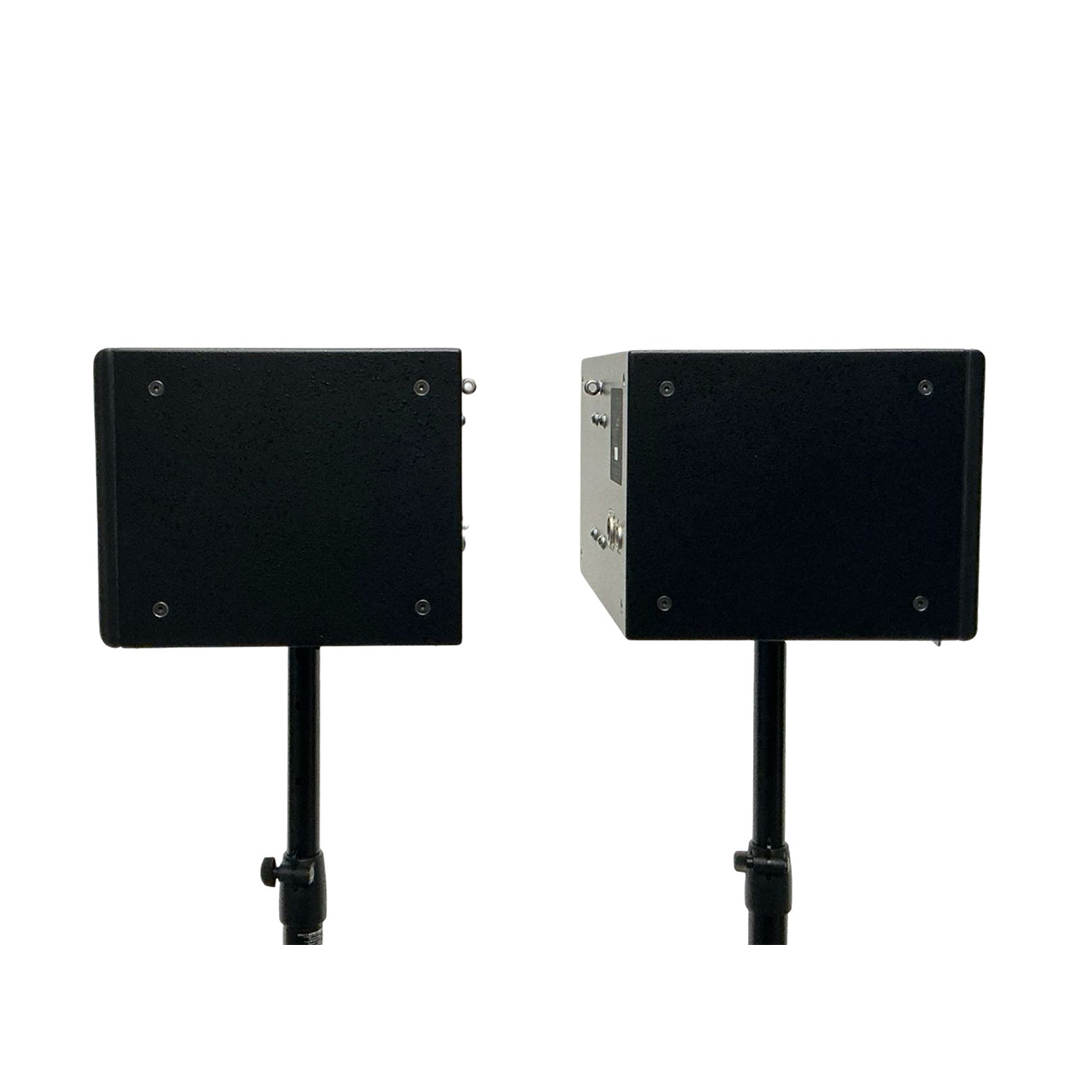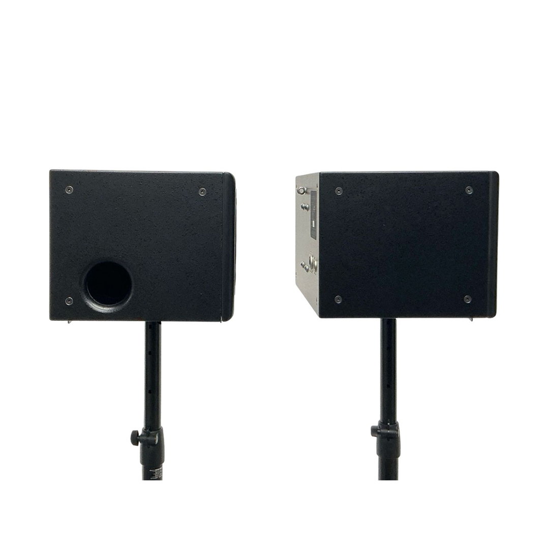 This version has remote amplifiers and additional cabinet bracing and mounting holes for mounting to a wall, ceiling, truss or pipe. They could also be used just like the standard ATC 25s on a speaker stand or console bridge too!