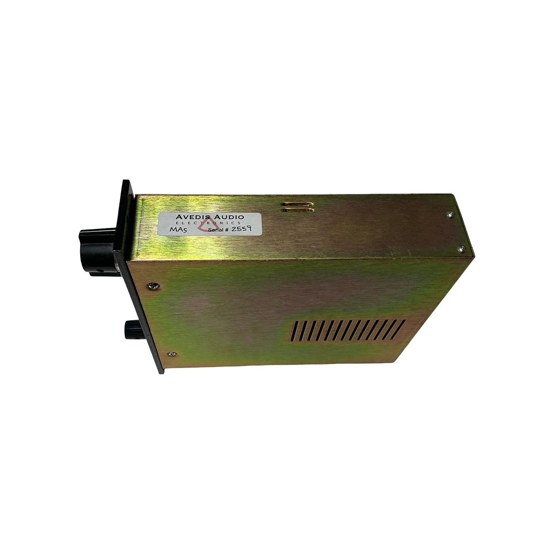 The Avedis MA5 is a 500-series microphone preamp inspired by the vintage Neve 1073, delivering rich, musical tone with modern reliability and headroom. Built around a custom Jensen input transformer and a Class A discrete design, the MA5 offers up to 70 dB of gain with smooth, harmonically complex character. A selectable 28 kHz “Air” boost adds open, detailed top end, while its punchy midrange and solid low-end response make it a standout choice for vocals, guitars, drums, and more.