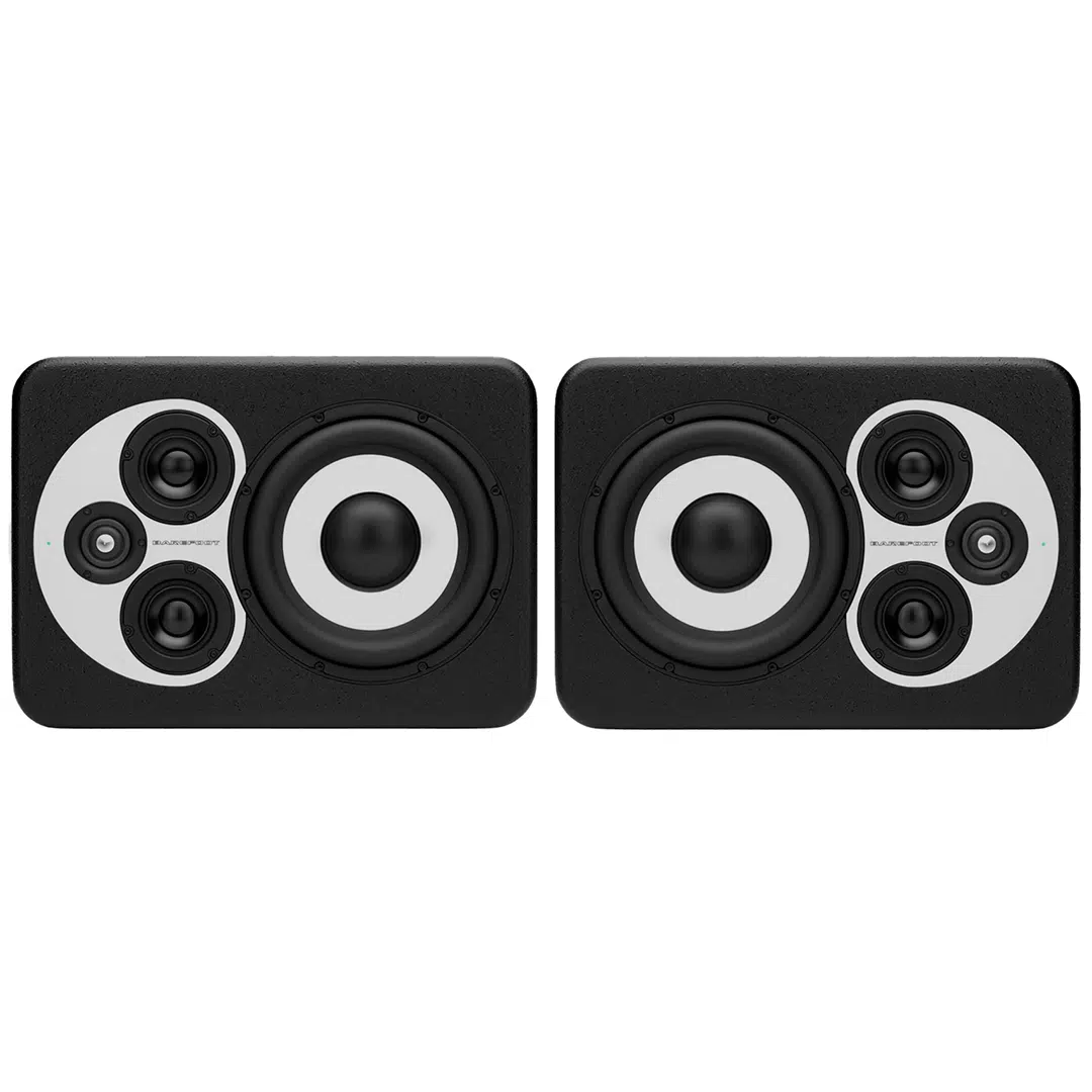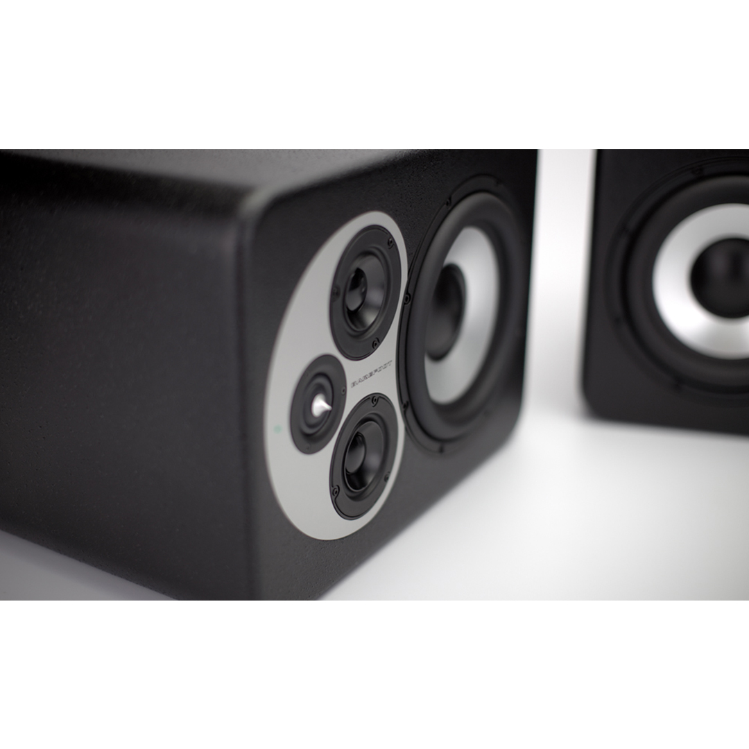 A ring radiator tweeter, dual aluminum-cone midrange drivers, and an 8-inch aluminum subwoofer work together through carefully chosen crossover points to deliver stable imaging and fast transient response. The sealed cabinet design supports clean low-end timing and consistent translation—especially useful when working in untreated or space-limited studios.