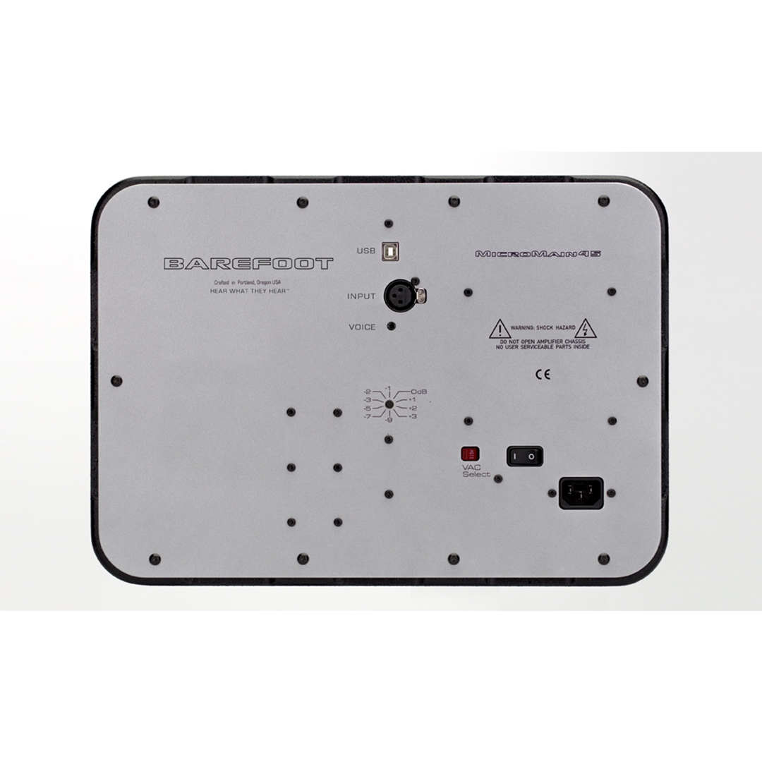 The Barefoot Sound MicroMain45 is a sealed, 3-way active studio monitor built to deliver the power, resolution, and translation Barefoot is known for in small to mid-sized rooms. Designed as a nearfield reference that can replace multiple speaker sets, MicroMain45 combines a high-headroom amplifier platform with fast, controlled driver integration—making it a practical choice for engineers who need confident mix decisions without dedicating the room to multiple monitors.