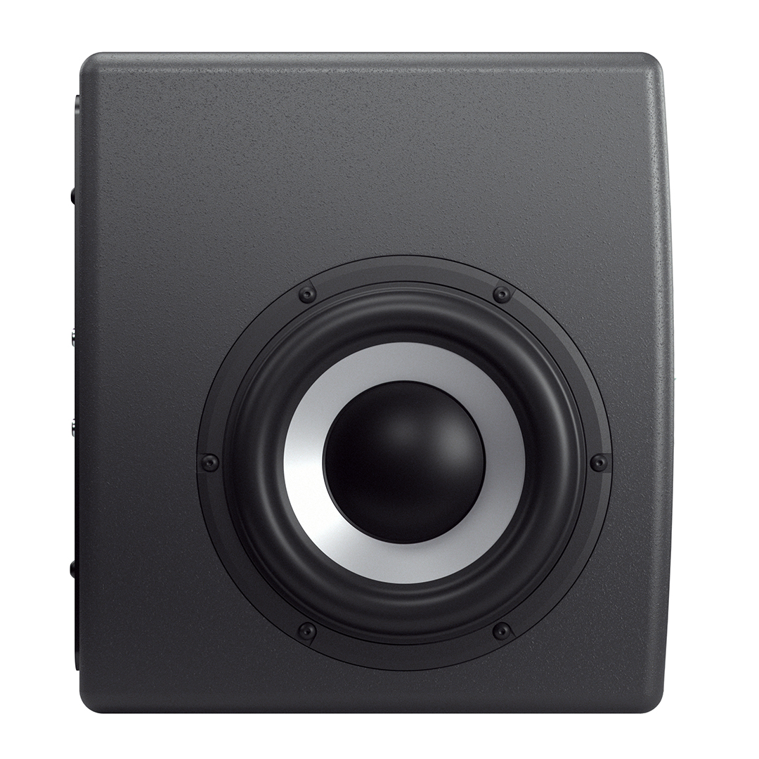 The sealed cabinet has been acoustically refined with increased internal volume, improved bracing, and full acoustic damping throughout. Constructed from medium-density fiberboard using stress-assembly techniques, the enclosure minimizes resonance while maintaining rigidity. A textured gray polyester finish completes the clean, professional aesthetic and contributes to long-term durability.