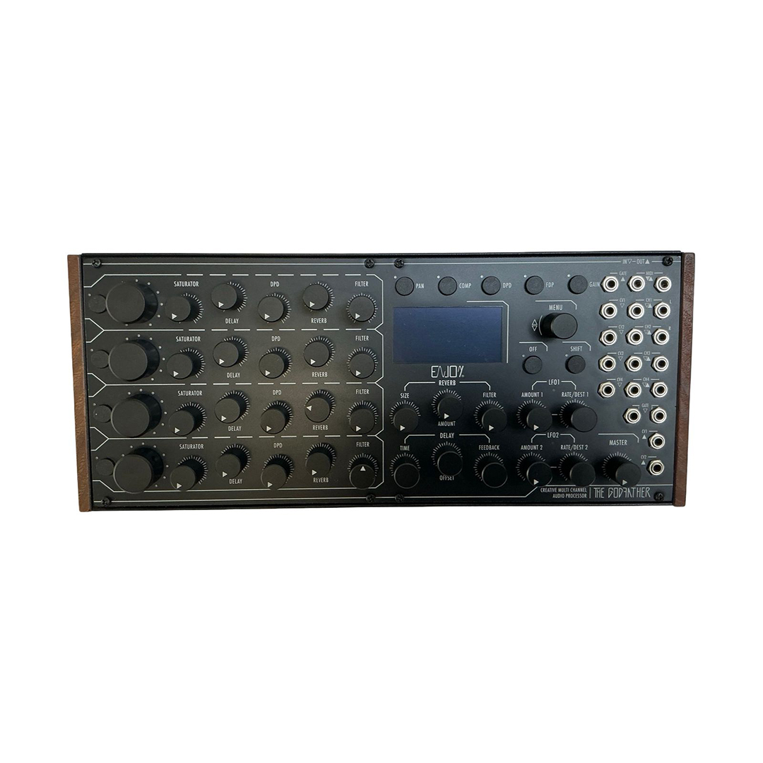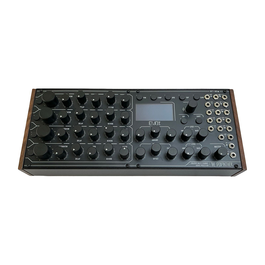 The Enjoy Electronics The Godfather is a premium multichannel effects processor built for advanced sound shaping and creative mixing. It features four independent channels equipped with EQ, compression, saturation, stereo imaging, and filtering, alongside powerful time-based effects such as dual delays and expansive stereo reverb.