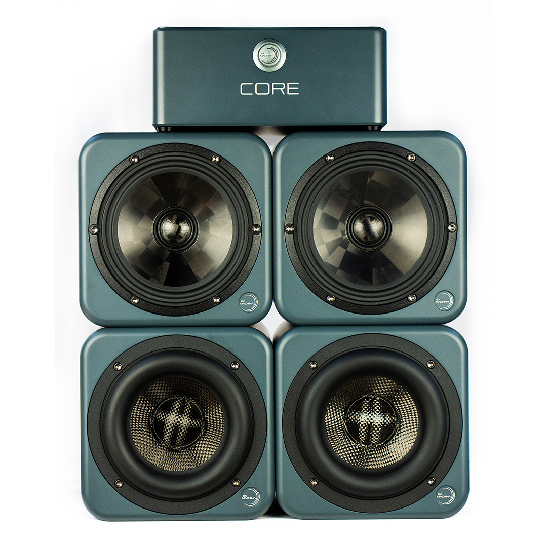The Ex Machina Selene + Poseidon Combo is a compact, full-range 3-way monitoring system designed for immersive, multi-channel, and space-constrained studios where accuracy and phase coherence matter most. By pairing Selene coaxial monitors with dedicated Poseidon subwoofers powered directly by the EXCore amplifier and DSP, this system delivers consistent imaging, controlled low-frequency extension, and scalable performance without external amplification or bass management complexity.