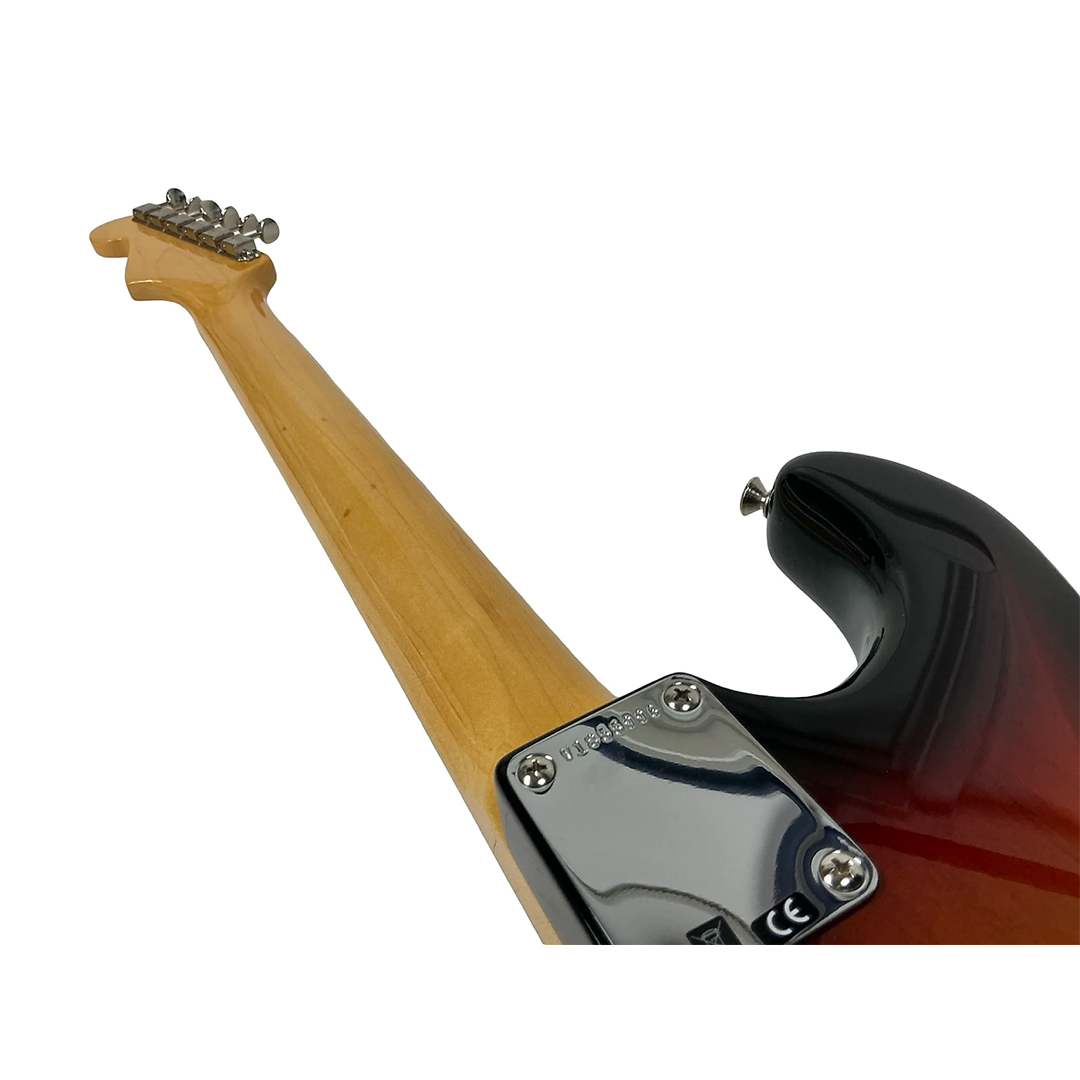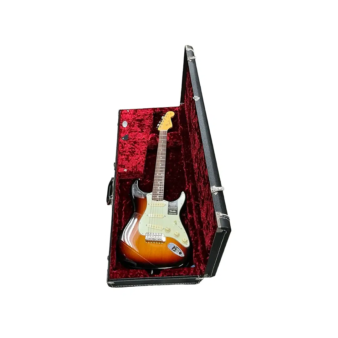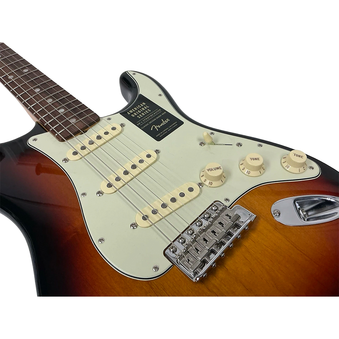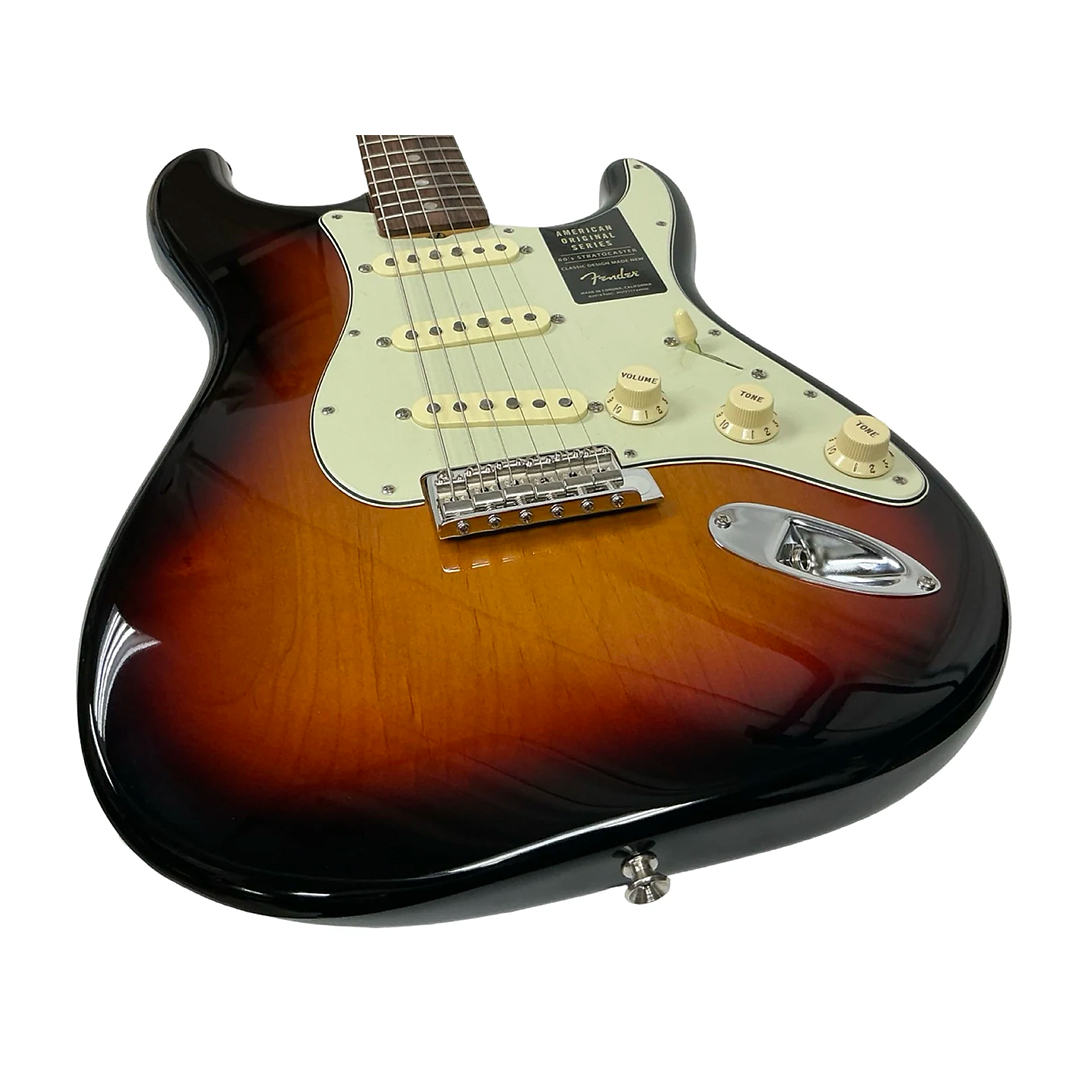 The Fender American Original ’60s Stratocaster captures the vibe and feel of a classic era with its vintage-style pickups, period-correct neck profile, and timeless Sunburst finish. Offering the smooth playability and iconic Strat tone players love, this solid-body electric guitar blends authentic ’60s character with modern craftsmanship—perfect for stage, studio, or collectors seeking true Fender heritage.
