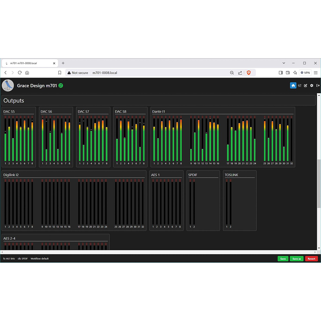 Housed in a rugged 2U chassis, the m701 is engineered for continuous professional use with a dual redundant power supply and ultra-quiet fan cooling. Configuration and operation are handled via the front panel or GraceNet, Grace Design’s browser-based control platform that requires no software installation. With a five-year transferable warranty and a future-ready modular architecture, the m701 32×32 USB is a powerful centerpiece for modern production studios seeking premium conversion and long-term flexibility.