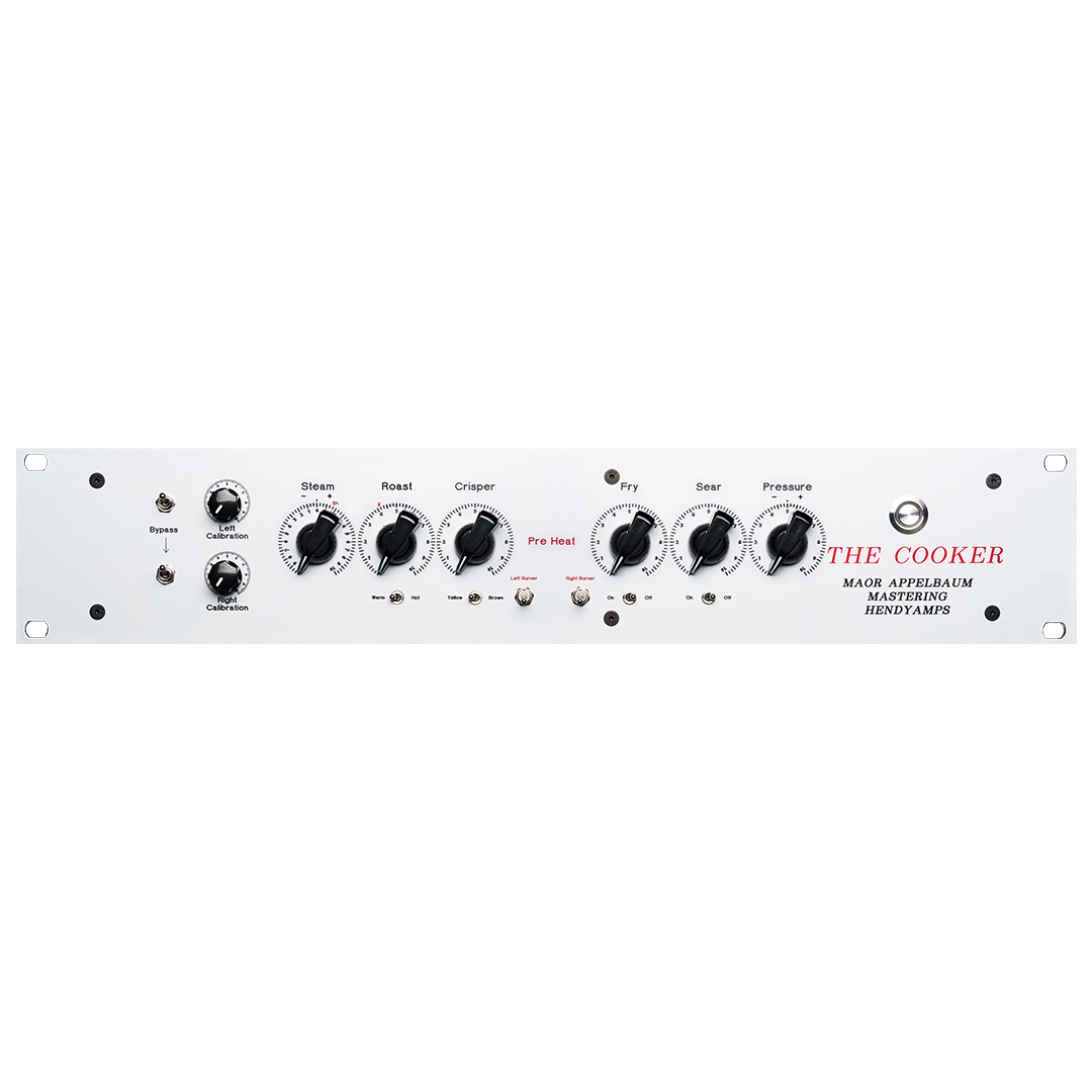 The Cooker is a high-voltage solid-state tone conditioner that delivers tonal impact and energy through custom transformers. This stereo processor combines the punch of high-voltage circuits with vibrant, thick transformer saturation for stunning sonic enhancement across tracks, busses, mixes, and masters. The Temp control (from The Oven legacy) provides variable energy and impact with two intensity settings (Warm and Hot) governing saturation range. Fry and Sear offer unconventional tonal conditioning beyond standard processing for unpredictable yet musical results. The Crisper function delivers warm air enhancement that opens up sound with pleasing presence. Steam control acts as input drive, while Pressure adjusts output level and saturated harmonics. The Pre-Heat switch engages an additional processing stage with a second custom transformer for extra energy and density. Extended control range spans from subtle enhancement to aggressive saturation, making The Cooker equally effective for transparent polish or bold character injection.