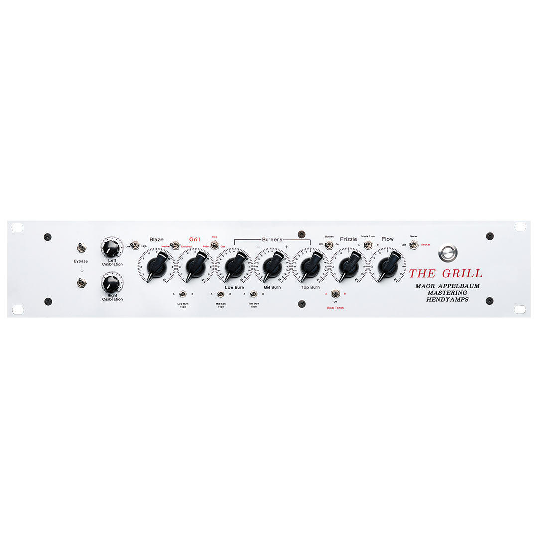 The Grill is the solid-state sibling to The Oven and The Stove, delivering tight, punchy saturation with warmth and roundness plus additional overdrive capabilities. This fully solid-state stereo processor excels in live mixing environments where tube-free reliability matters, while providing extra tonal injection that makes tracks jump out thick and full. The Blaze control drives both multiband and broadband sections with Short (light) or Long (saturated) range settings for powerful yet controlled enhancement. The Grill control introduces an additional solid-state stage for tight, clean saturation that creates fullness and depth. Three Burner controls (Low, Mid, Top) engage the entire circuit holistically with dual voicing per band, while the Bunsen switch expands Top Burn range for four high-frequency options. Frizzle provides boost-only air enhancement in two intensity modes. The hidden Smoker mode isolates a hi-fi MOSFET driver stage using only Roast and Flow controls with Neutral/Enriched voicing and Elec/Pellet/Gas intensity for light subtlety to aggressive overdrive. The Blow Torch switch engages overdrive circuitry in two positions (A or B) for edgy saturation on instruments, busses, and parallel processing.