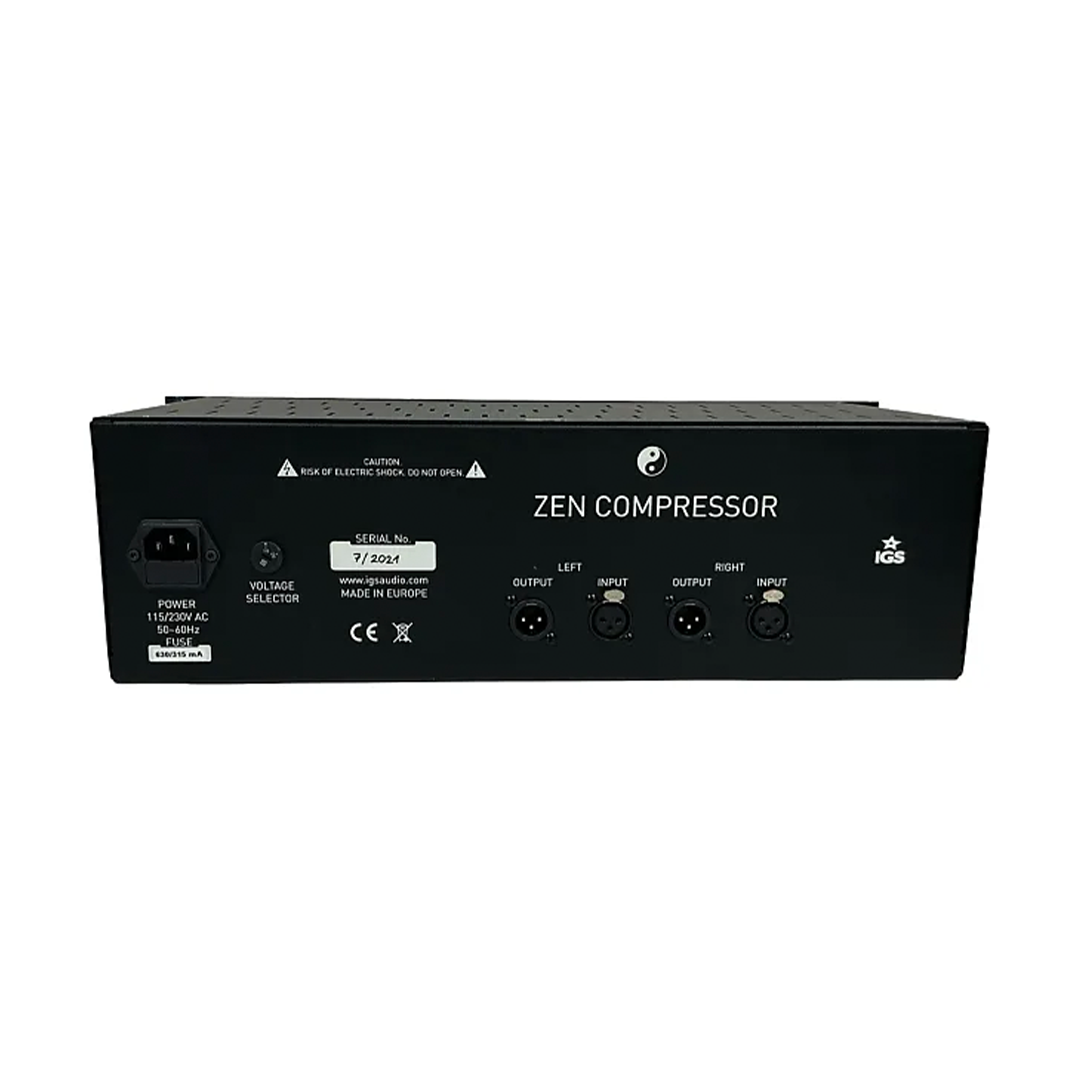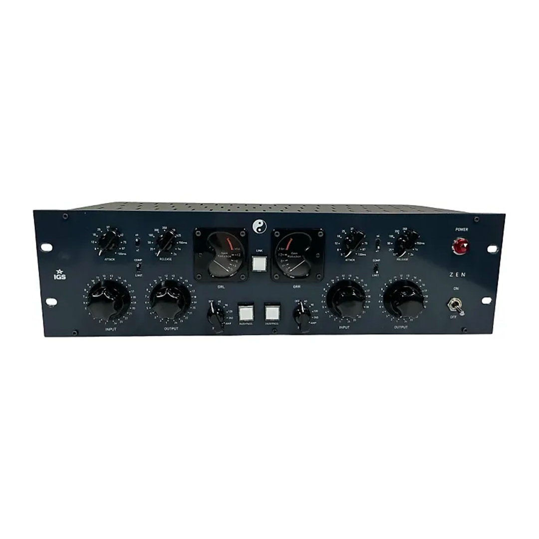 The IGS ZEN Stereo Compressor is a high-end dual-channel unit designed for mastering and mix-bus applications, offering both precision control and rich analog character. Inspired by vintage designs, it features 14 bipolar transistors and 8 matched Zener diodes per channel, delivering smooth, musical compression. With stepped input/output controls, stereo-link or dual mono operation, a switchable sidechain high-pass filter (60/90/120/240 Hz), and custom input/output transformers, it provides flexible and reliable performance. Its adjustable attack (8–100 ms), release (10–2000 ms), and limiter mode make it suitable for everything from subtle mix glue to bold, character-driven shaping—all with a warm, punchy tone ideal for critical studio work.