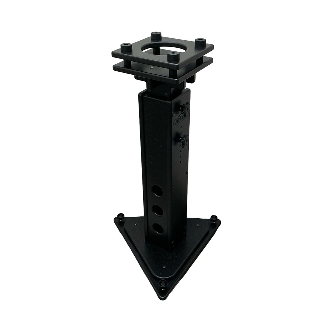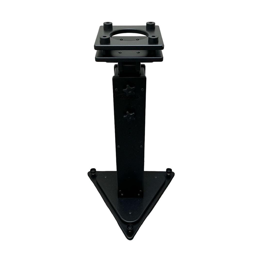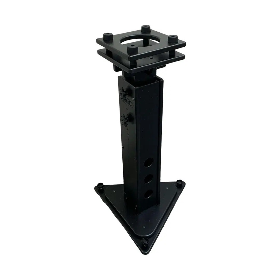 JamRacks® Grand speaker stands are as strong as they are beautiful. Feet adjust for tilt, Top adjusts from 36″ to 42″. Top plate is isolated from base, with cable management in the center. Triangle base is 21″x21″x21″ heavy duty enough to hold 125 lbs. (Tipping factor for heavy speakers will depend on size of speaker box)