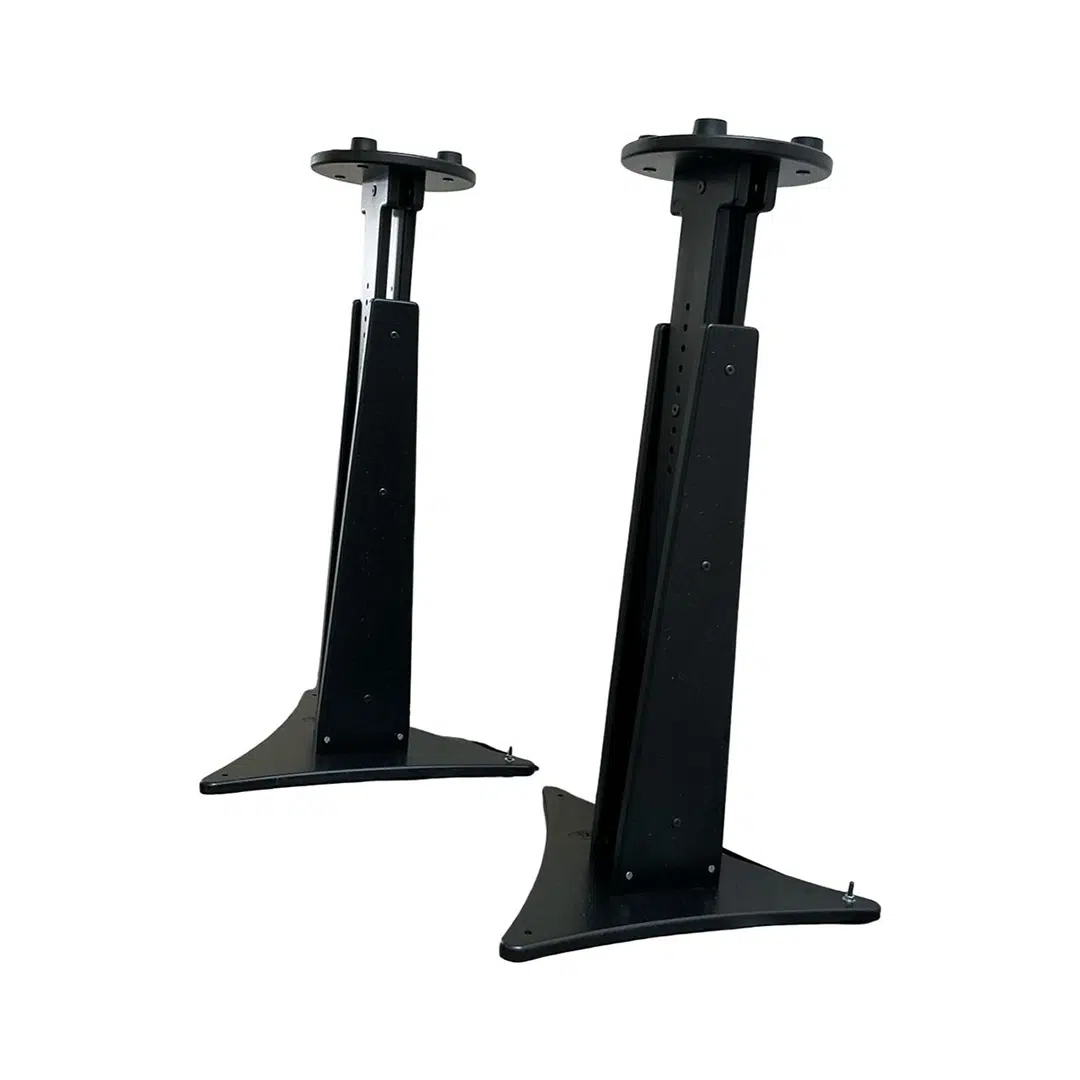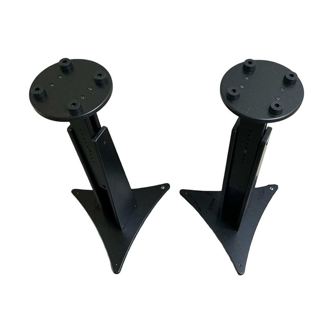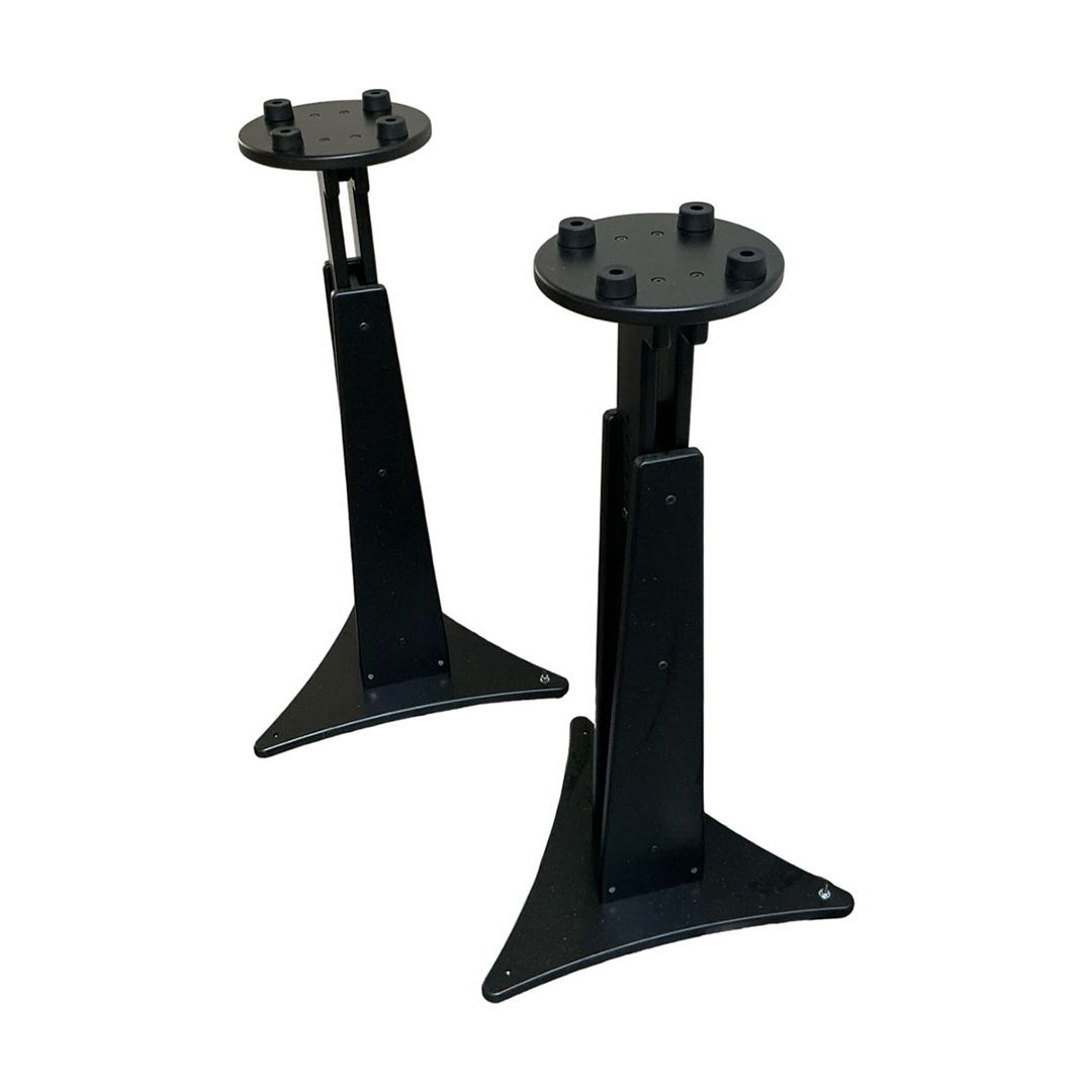 The Star Speaker Stands are the perfect solution for your commercial or home music studio. Holds up to 60 lbs. Triangle base is 21-7/8″ on each side. Top plate is 10″ diameter with 1-1/2″x3/4″ rubber isolators. Height adjustable from 33-3/4″ to 41-3/4″. Feet are adjustable for tilt. Comes with our ball end feet for minimum contact with the floor to avoid damage.