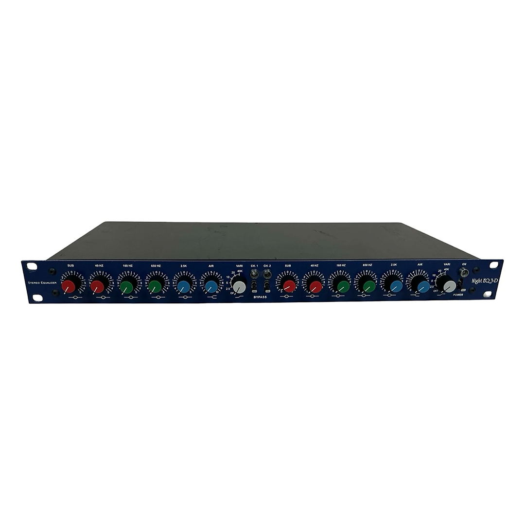 The Night Pro EQ3-D is a 6-band stereo equalizer celebrated for its smooth, musical character and signature “Air” band. It features five fully parametric bands with ±15 dB of gain and broad 2.5-octave bandwidths, plus a unique boost-only Air band that enhances high-end clarity with selectable frequencies from 2.5 kHz to 40 kHz and up to +20 dB of gain. Designed with ultra-low phase shift and a wide frequency response from 10 Hz to 40 kHz, the EQ3-D adds depth, openness, and detail—making it an ideal tool for vocals, mix bus, and mastering applications.