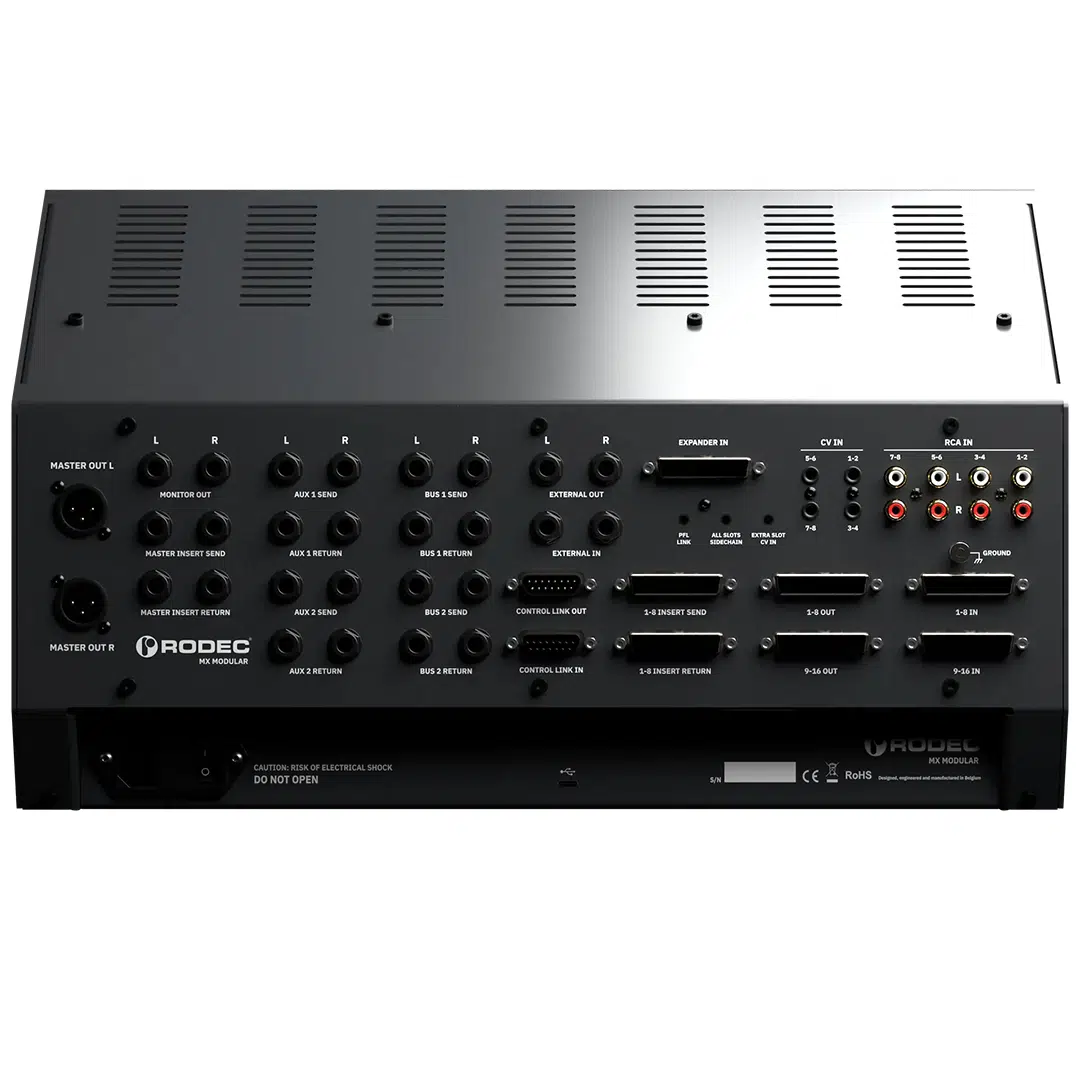 The Rodec MX Modular is more than a mixer—it’s a performance instrument designed for artists, producers, and engineers who rely on hands-on control and uncompromising sound. Built to move seamlessly between studio and stage, the MX Modular combines a fully analog signal path with modern digital integration, giving users a flexible, tactile command center for mixing, performance, and hybrid workflows.