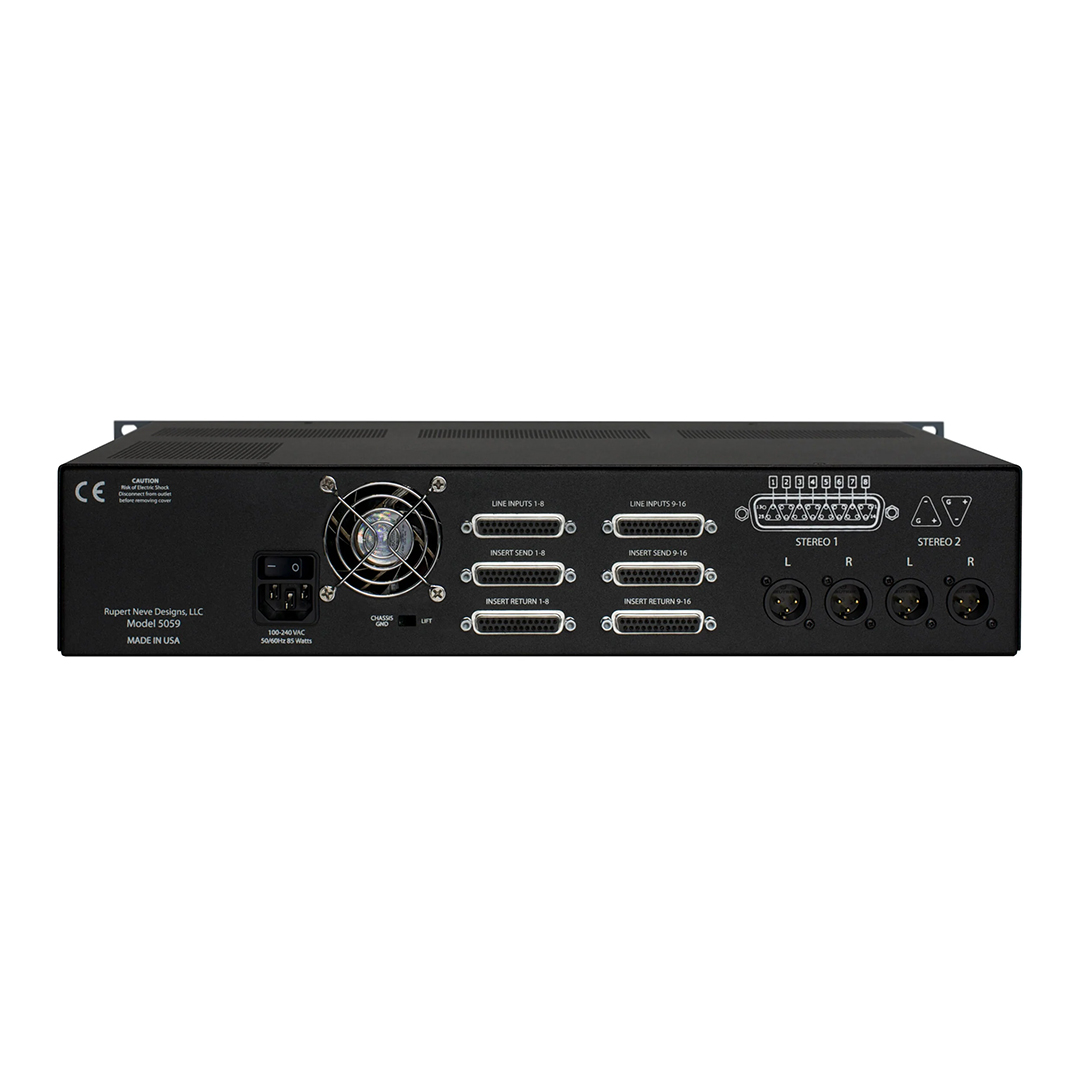 Professional Expandability: Rupert Neve Designs designed the 5059 to be the core of a modular system. Multiple units can be linked to increase channel counts or used alongside the 5060 Centerpiece to create a world-class analog mixing environment.