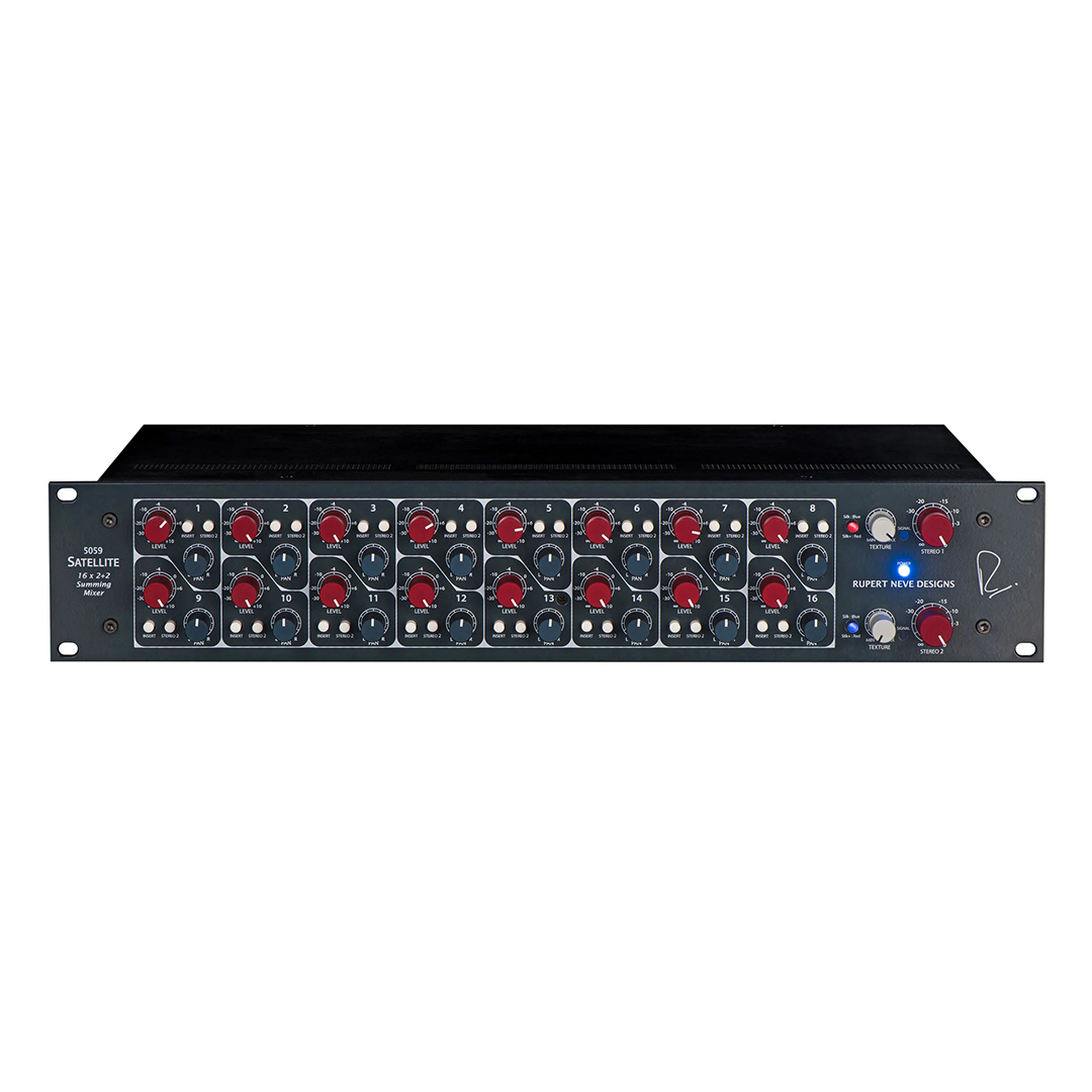 The 5059 Satellite is a 16-channel summing mixer designed to bridge the gap between digital convenience and analog character. Built around the same Class-A topologies and custom transformer designs found in the flagship 5088 console, the 5059 delivers the warmth, depth, and “out-of-the-box” sonics that have defined professional recording for decades. Rupert Neve Designs engineered this unit to give engineers complete control over two separate stem mixes, allowing for complex routing and a level of harmonic density that is impossible to achieve within a computer alone.