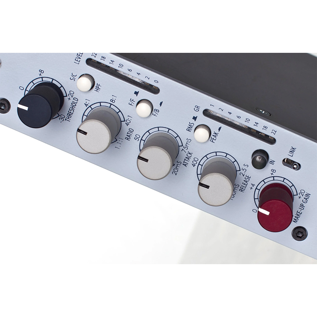 Comprehensive Dynamics Control: Featuring continuously variable Threshold, Ratio, Attack, and Release, the 543 offers a level of precision typically reserved for large-format consoles. The Ratio ranges from a gentle 1.1:1 to a hard 40:1 Limit.