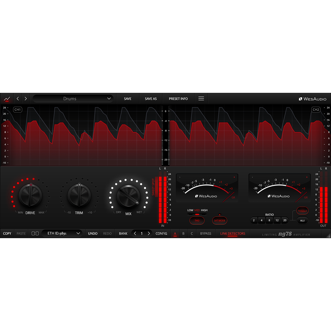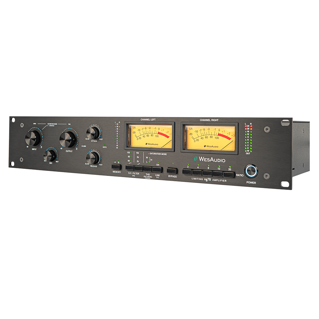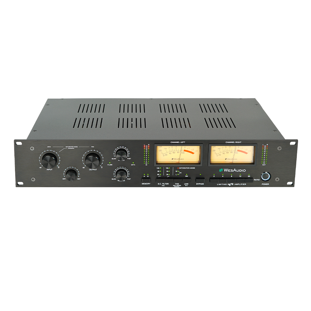 The NG78 reimagines the classic 1176-style FET compressor for modern hybrid production. This fully analog stereo compressor delivers +24dBu of headroom and five ratio settings (2:1, 4:1, 8:1, 12:1, 20:1) including the legendary All-Button Mode, while adding contemporary features that bridge analog circuitry with digital workflow integration. A Carnhill transformer output stage provides authentic analog weight, while WesAudio’s proprietary Dynamic Link Technology ensures perfect stereo balance across every parameter combination by adaptively compensating for component tolerances in the sidechain. With total recall, plug-in control via USB or Ethernet, dedicated parallel compression mixing, and a standalone saturation mode, the NG78 offers vintage FET aggression with the flexibility modern productions demand.