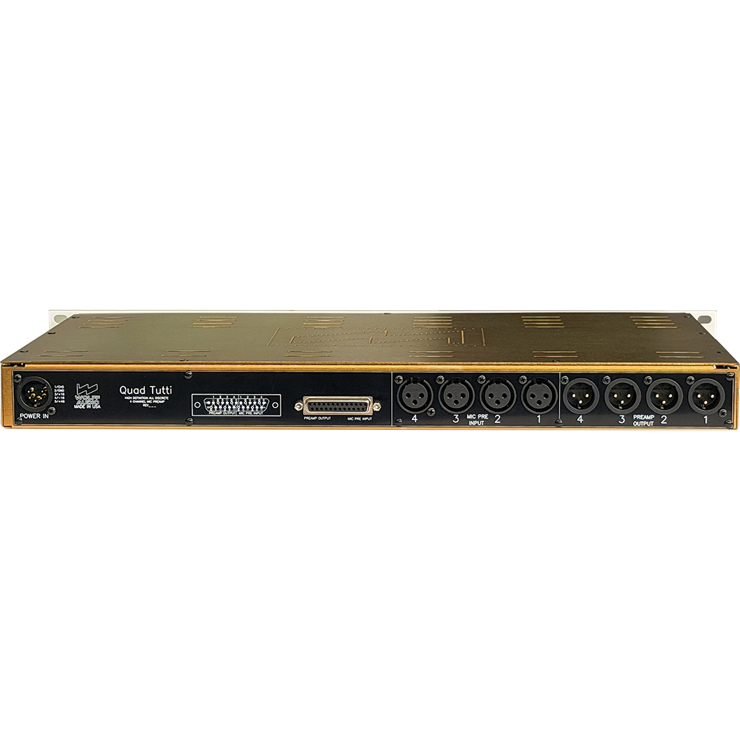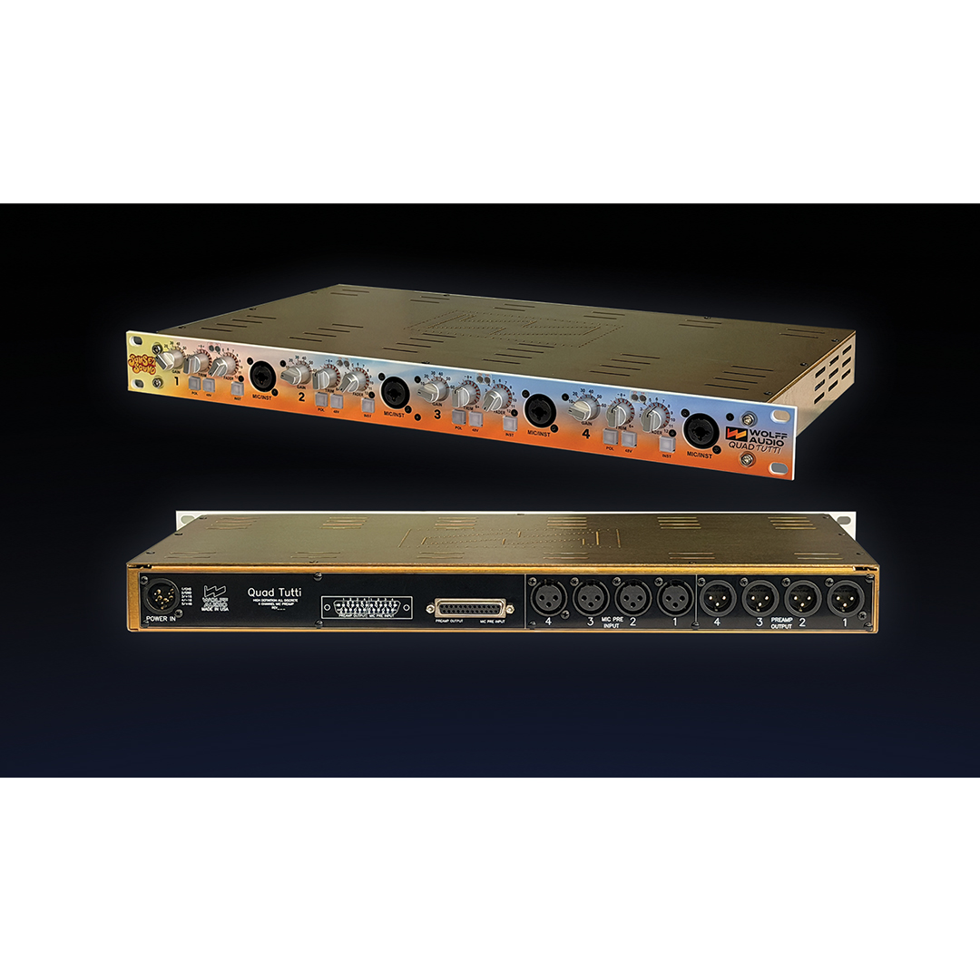 Wolff Audio proudly announces the Quad Tutti, a four-channel, single-rack-unit microphone and instrument preamplifier based on the legendary Sunset Sound Studio 1 console preamp — now available for the first time in a multi-channel configuration.