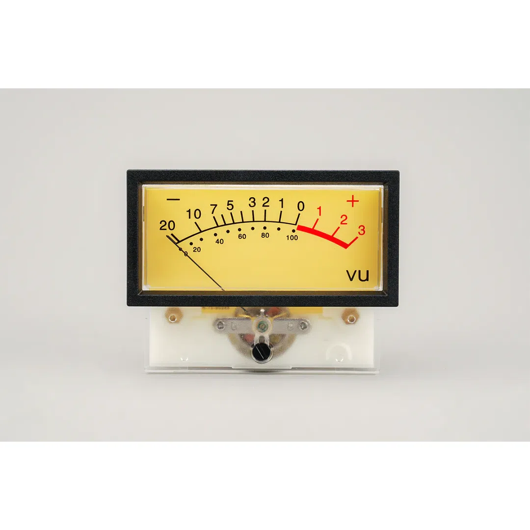 A rectangular VU meter, used on Z&H Design’s 1178 Stereo Peak Limiter.